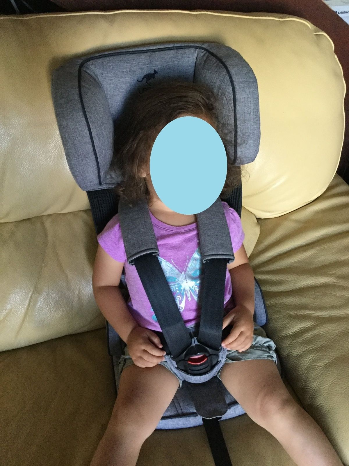 Avantage : il est très compact, léger 750 g, facile à installer. Il guide parfaitement la ceinture sur les cuisses et dispose d'un guide ceinture à l'épaule. Il est donc parfait à garder dans un cartable, sac à main, boite à gants… pour éviter à un enfant de voyager sans siège du tout.